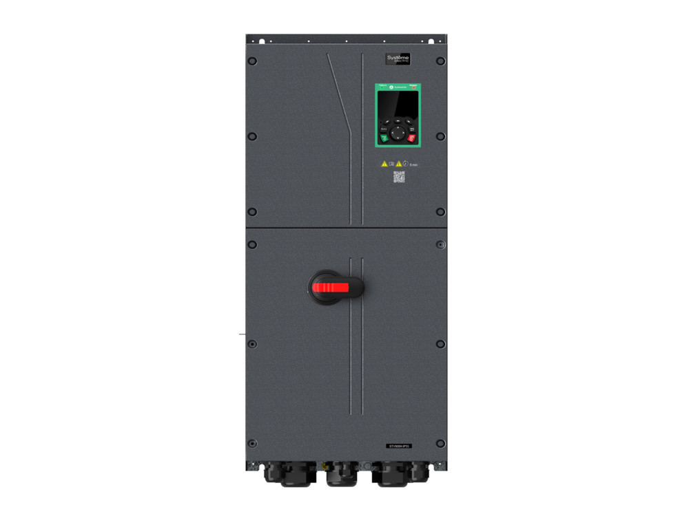 Преобразователь частоты SystemeVar 900H (STV900H). Номинальная мощность: 45 кВт (G-тип: перегрузочная способность: 150% в течение 60с, 180% в течение 10с, 200% в течение 1с. Несущая частота ШИМ: 4 кГц). Номинальный ток: 92 А (G-тип). Питающее напряжение 3Ф 380В (-15%) ~ 440В (+10%). Степень защиты IP55. Встроенный DC-реактор. Встроенный тормозной прерыватель. Встроенный-ЭМС фильтр (Класс С3, согл. EN 61800-3). Коммуникационный протокол: Modbus RTU. Кол-во входов/выходов: 6DI, 2AI, 2DO, 2RO, 1AO. Степень защиты: IP55. Покрытие плат (Класс 3С2, согл. EN 60721-3-3). Температура окружающей среды: от -10°C до +50°C (до +40°C без ухудшения номинальных характеристик). Скалярное управление, векторное управление (без/c обратной связи по скорости). Функции для крановых применений (в том числе функции управления стояночным тормозом двигателя). Работа как с асинхронными, так и с синхронными двигателями. 3 слота для расширения функциональности (возможность использования дополнительных коммуникационных карт, карт расширения входов/выходов, карт энкодеров, карты ПЛК, карты внешнего питания цепей управления 24V DC). Встроенная функция безопасности STO (Safe torque off), SIL2. Встроенный рубильник (для отключения сетевого питания). Габаритные размеры (ДхШхВ), мм: 338х336,7х800. Вес: 48,2 кг.